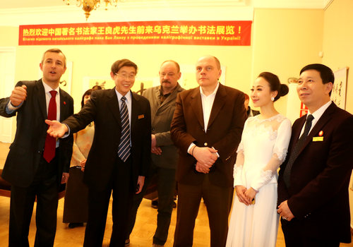 乌克兰文化部前部长、国家博物馆馆长等中外嘉宾参观王良虎个人书法作品展