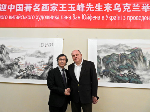 乌克兰国家文化部前部长库乐尼亚克出席王玉峰个人画展并合影留念