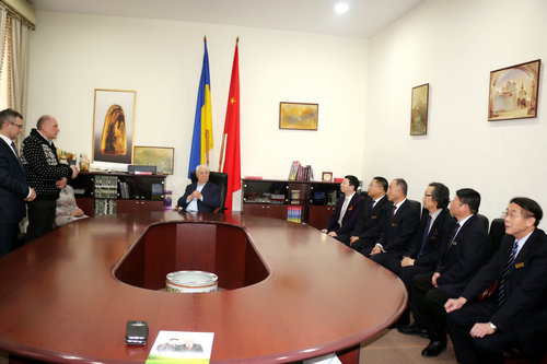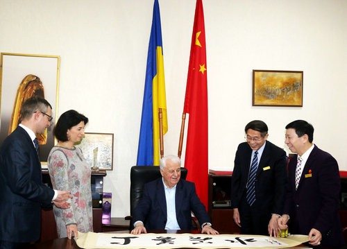中国乌克兰文化商务代表团第三站,也是最为隆重的一站。在乌克兰国家文化部前部长库乐尼亚克的精心安排下,代表团一行有幸受到乌中协会荣誉主席、乌克兰首任总统克拉夫丘克的亲切接见。
