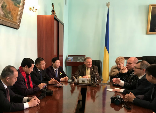 中国乌克兰文化商务代表团最后一站,走进了乌克兰现代艺术学院参观考察和商务交流,在乌克兰国家文化部前部长、乌克兰现代艺术学院院长库乐尼亚克推动下,再次举行了中方与现代艺术学院未来合作的初步洽谈,并达成初步意向。与此同时,中国乌克兰文化商务代表团在乌交流也画上了圆满的句号。(记者:庞兆平 摄影:聂伟丞)