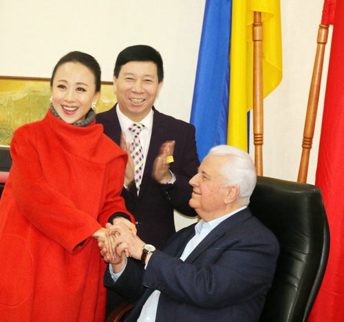 乌克兰首任总统克拉夫丘克听完瀚锴先生汇报后,高兴地说:“我首先欢迎中国乌克兰文化商务代表团一行,同时感谢刘瀚锴为推动乌中友好所做的努力。其实,我与中国很有缘分,在担任乌克兰总统时,率先打开了与中国的友好大门,当时我是最早到中国进行国事访问的,而且还爬了中国雄伟的长城。因此,乌中文化交流、商务交流极为重要,这为推动两国友好起到关键的作用。当得知你们与柴柯夫斯基音乐学院计划在中国进行友好合作时,我表示热烈欢迎。如果我到时候身体条件允许的情况下,会亲赴中国考察,如不能去将委派库乐尼亚克一行前去考察。”