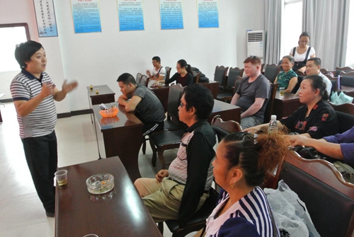 图为:区文化管音乐老师蒋海兵为盲人歌手进行指导