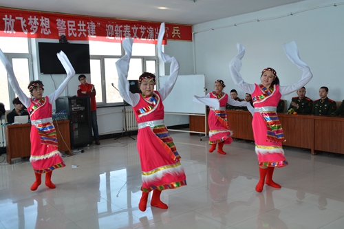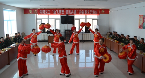本站讯 1月20日,内蒙古呼伦贝尔市武警支队扎兰屯市二中队的会议室内热闹非凡,由扎兰屯市向阳街道金星社区、向阳义工艺术团主办的“放心梦想,警民共建”迎新春文艺演出在这里隆重举行,武警官兵们参加了演出活动。