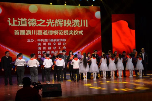 晚会前,县委书记赵亮等县领导在教育电视台三楼演播厅亲切接见了首届潢川县道德模范(含提名奖)和首届潢川好人。赵亮首先代表县委、县政府对荣获“首届潢川县道德模范”和“首届潢川好人”荣誉称号的人员表示热烈祝贺,并对他们胸怀大爱、无私奉献的善行义举给予高度评价。