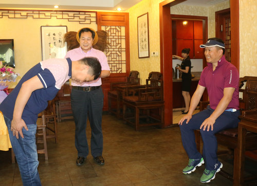 杨照文向著名歌唱家金波鞠躬行礼