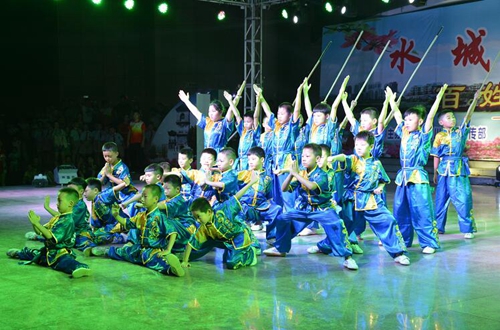 当晚,首场文艺演出在欢快激昂的开场舞《微笑》中拉开了序幕,男生独唱《跟你走》、舞蹈《我的祖国》、武术表演《英雄少年》、歌伴舞《江山》等节目以恢弘大气又不失细腻的演出形式赢得了现场观众的阵阵掌声。