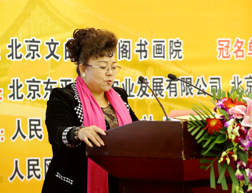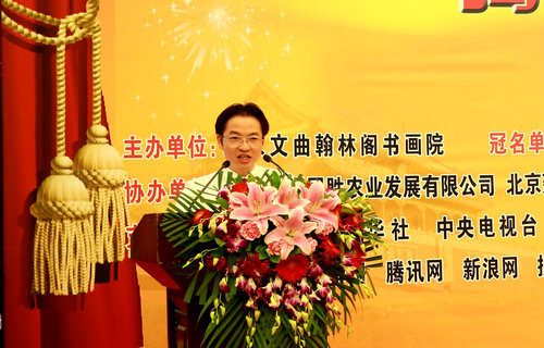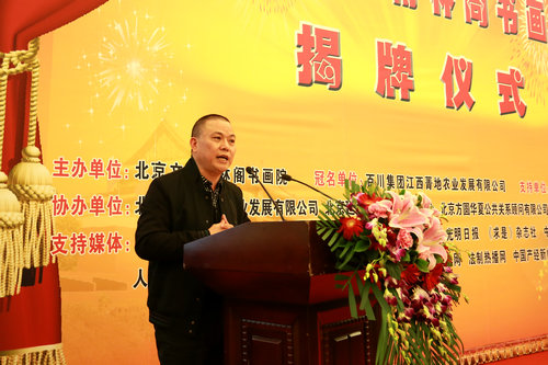 北京文曲翰林阁书画院院长齐国章在致词时说:“习近平总书记曾指出,“培育和弘扬社会主义核心价值观必须立足中华优秀传统文化”,“建设文化强国,必须立足于中国优秀传统文化的根基,汲取营养,获取力量,赋予时代精神”。中国传统文化博大精深,是中国文化软实力取之不尽、用之不竭的源泉。北京翰林阁书画院的成立,对弘扬我国书画艺术是一个良好契机,对继承和发扬传统艺术有着巨大的推动力。同时它也为各领域对书画艺术的交流提供一个广阔的空间和良好的平台。希望并相信我院的成立,能够对促进祖国书画艺术的发展和中外艺术文化的交流与融合,起到积极的推动作用。”
