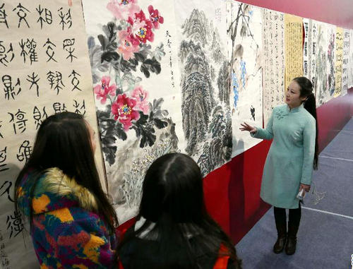 清新文化创始人张凡凡在画展现场向参观者讲述画展内容