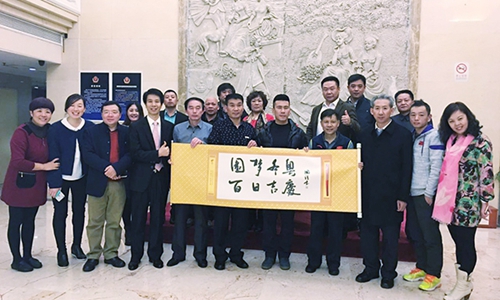 肖国清在国家行政学院创作的作品,并与邓小平饰演者段炼等合影