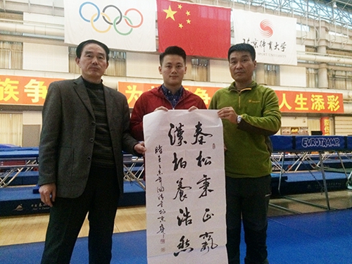肖国清和奥运冠军陆春龙、易键网总裁尤小龙在北京体育大学。