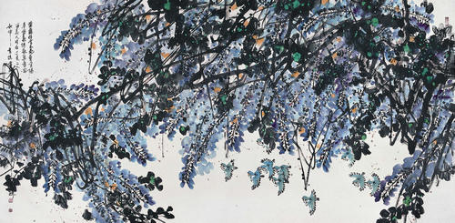著名画家张秀进精心创作的作品《紫藤挂云木》
