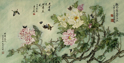 著名画家张秀进精心创作的工笔画《蝶舞春风》
