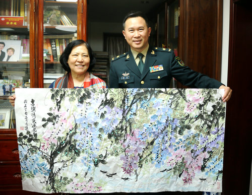 张秀进的绘画作品被火箭军文工团著名歌唱家金波收藏