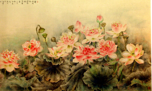 张秀进将一种淡雅的灵性注入到荷花中,焕发起灵魂深处的精髓,在形与神间达到了完美的融合,并将荷花的脱俗意蕴无限的延展拉伸。这不仅符合了现代审美情趣之发展,在认同传统的阴阳和谐基础上更暗合了现代新的时空观念。张秀进的荷花让现代人在越来越复杂的现实际遇中和污浊之气渐浓之时依然记得保留一份难得的淡雅纯真。