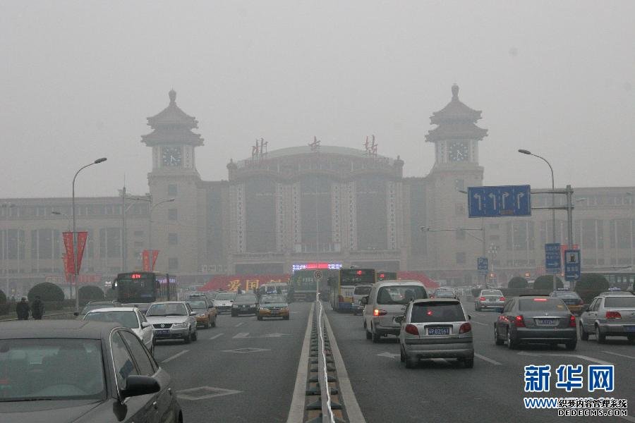 1月18日,北京火车站笼罩在大雾中。当日,北京出现大雾天气,北京市气象台7时55分发布大雾黄色预警信号。 新华网社发