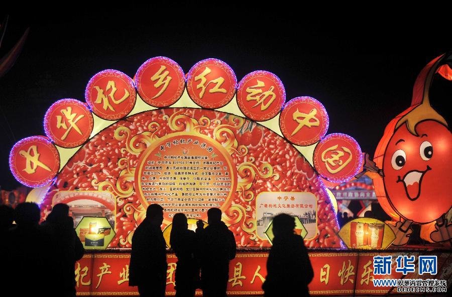 2月5日晚,游人在宁夏回族自治区中宁县观赏花灯。随着元宵节的到来,宁夏回族自治区中卫、中宁等地纷纷组织大大小小的赏灯会,吸引了大批游人赏花灯、猜灯谜和放孔明灯以寄托新年希望。新华社记者 彭昭之 摄
