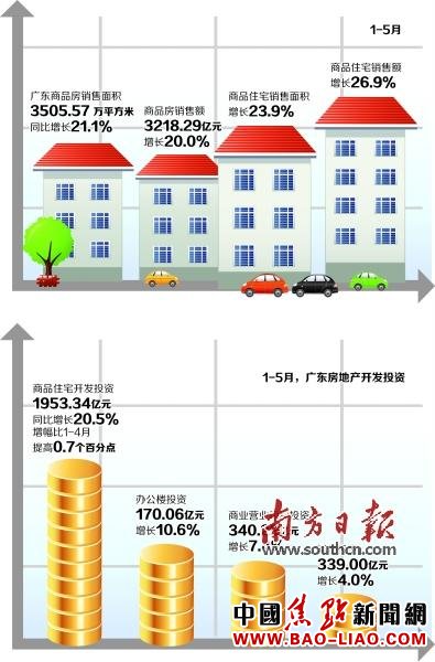 今年上半年,以“3·30新政”为转折点,楼市成交实现了V字反转。以广东为例,广东省统计局的数据显示,今年第一季度,广东商品房销售面积1720.69万平方米,同比增长4.1%;商品房销售额1571.43亿元,增长3.4%。到今年5月份,广东商品房销售面积3505.57万平方米,同比增长21.1%,商品房销售额3218.29亿元,增长20.0%,商品房销售呈现持续回暖的态势。