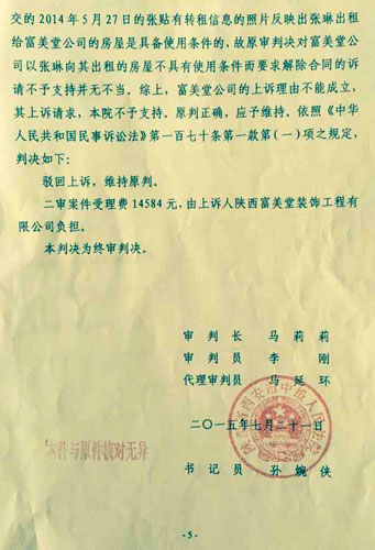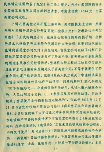 4、在西安市中级人民法院进行二审时,该院主审法官居然认为租赁房屋水电设施不完善没有充分证据证明,并也不去进行现场调查,反而同样不问原告为何进行转租的情况,依旧判令驳回原告诉讼请求。