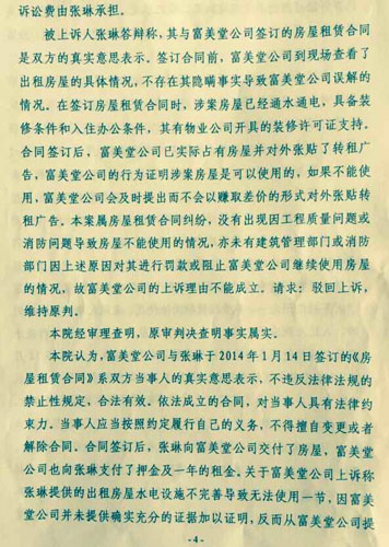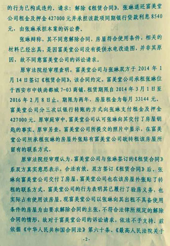 3、西安市雁塔区人民法院在受理该案件时,原告提出现场取证房屋内水电设施是否完善的请求,还事实一个真相。但这一合理要求却被该院主审法官拒绝,认为签署了合同,缴纳了租金并不问原告为何转租的实际情况,判令全部驳回原告诉讼请求。