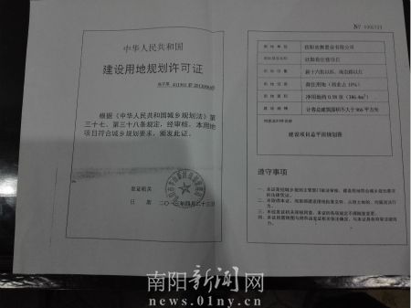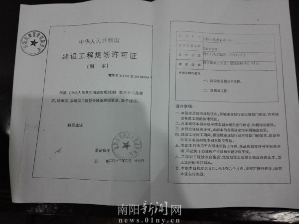 欣舞商住楼建设工程规划许可证(地字411501新201300064号)