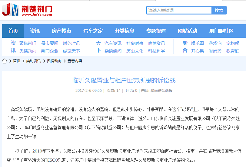 临沂久隆置业与租户匪夷所思的诉讼战到底如何收场,本网将持续关注并做跟踪报道!