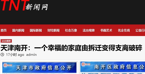 TNT新闻网(记者 郝建)报道:威廉二世曾说:“农夫的茅舍再破旧,风可以进,雨可以进,但国王的士兵决不能进!”而这句经典的言论却与原中国建设银行天津红桥支行职工张兰英的遭遇形成强烈的对比,她的房舍,风没有进去,雨没有进去,但是拆迁队进去了!最终导致一个幸福的家庭支离破碎……