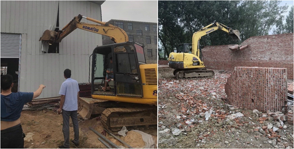 在整治行动开展之前,镇政府结合土地所制定了专项整治方案,拆除前对现场进行了警戒封锁和清场断电等措施,执法记录仪全过程记录,保证了执法的透明公正,拆除过程现场不间断进行“双违”集中整治的广播宣传,形成现场拆除整治氛围,扩大人民群众的知晓率和影响力。同时,利用喷水车实施喷水作业,降低扬尘污染。