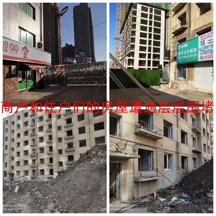 但是,任凭商户、住户们不断质疑,任凭四平市政府的行政复议确认其补偿决定违法,依然不能阻止铁西区政府的强拆和逼迁。商户、住户们向媒体反映:2020年11月26日,铁西区城管数十人在没有任何相关依据的情况下,对11号楼强行加筑围栏,很多房主的单元门和窗户被开发商用土堆堵死,正在经营的商户临街的门面也被用铁皮围栏围上......房主们质疑,开始只是富豪地产对商户、住户们断水断电断气断暖断路,到现在,铁西区政府指使的城管已经亲自上阵了,用铁皮围栏将整栋楼围住。他们不解,政府本来是负责监管的,而现在的铁西区政府其监管作用体现在哪里?是否充当了帮助开发商获取暴利的帮凶?当初的挂牌出让方案是怎么签署的?对开发商做了哪些约束?能否将方案公之于众?但当房主们提出这些质疑并强烈要求出示依据时,城管答复是“上旨下派,没有文件”,强行将整楼围起。商户、住户们据此认为这种行为严重违背了《国有土地上房屋征收与补偿条例》第三十一条的规定,是典型的强拆,是对现行法律法规的公开挑战,也是对上级政府的藐视和挑战。