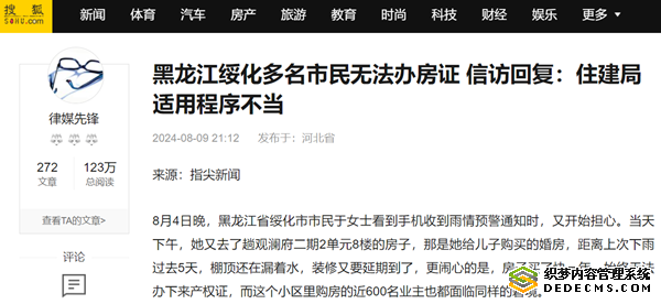 多位业主投诉到相关部门,当地信访部门对其中的投诉者回复:“绥化市住房和城乡建设局出具的处理意见无明确结论,适用程序不当。”