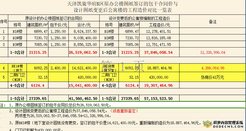 但是,被告天泽公司却继续坚持不同意进行鉴定。其在法庭上质证:被告认可法院上述要求双方鉴定的部分,对于总体的工程量不需要进行鉴定。同时,该工程造价鉴定报告与原被告所签订的合同条款不符,违背了双方的约定。并且,B区建筑面积、建筑形式、结构形式、水暖、电气主要系统均未发生改变,设计变更签证与现场签证均属于施工范畴内的签证部分。