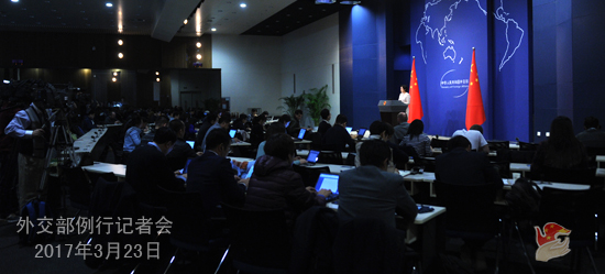 人民网北京3月23日电 据外交部网站消息,外交部发言人华春莹23日主持例行记者会,记者会答问实录如下: