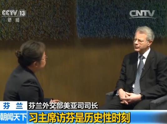 芬兰外交部美亚司司长泉溪在接受央视记者采访时表示,非常高兴中国国家主席习近平对芬兰进行国事访问,中芬两国有着传统、务实的合作关系,希望未来能有更长足的发展。