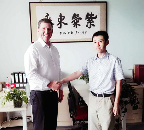 张羽鹏与澳大利亚BIA集团董事会战略顾问约翰沃克亲切交谈 中国是有着13亿人口的农业大国,解决好吃饭问题始终是治国理政的头等大事。发展现代农业,根本出路在科技。农业科技是确保国家粮食安全的基础支撑,是加快现代农业建设的决定力量。澳大利亚是南半球经济最发达的国家,全球第12大经济体,全球第四大农产品出口国,澳大利亚的菲力牛排更是享誉全球。根据两国独有的优势和条件,中澳商贸人士一致认为,载“一带一路”的框架下合作潜力巨大。