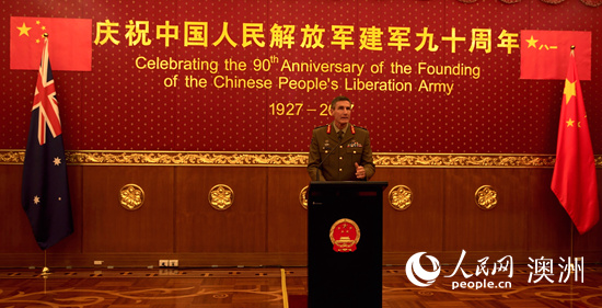 人民网堪培拉7月28日电(雪萌) 7月28日,中国驻澳大利亚使馆举行建军节招待会,隆重庆祝中国人民解放军建军90周年。成竞业大使、王京国武官及使馆全体外交官,澳政府和军队高官,部分驻澳使节、高级外交官,驻澳武官团及华人华侨代表300余人出席。