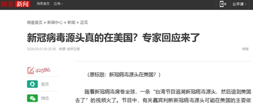 此次台湾节目之所以将新冠病毒源头追到美国去,一个重要理由是: