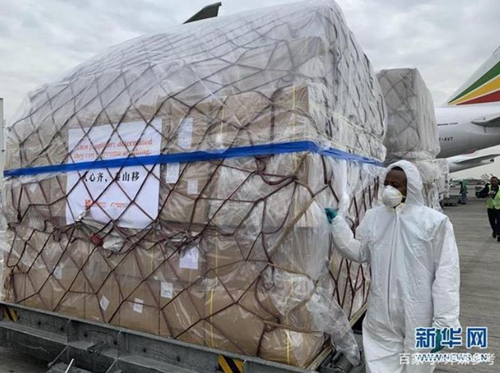 ▲3月22日,中国援助物资抵达埃塞俄比亚,包含540万只口罩、108万个试剂盒、4万套防护服和6万个防护面罩。