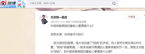 因为突发的疫情,极大地加速了“脱钩”的声浪,有人曾把中美关系比作夫妻,“脱钩”就像离婚,一般来说被动离婚的人要更依赖对方一些,美国主动提出“脱钩”,那中国依赖美国的最核心要素是什么呢?