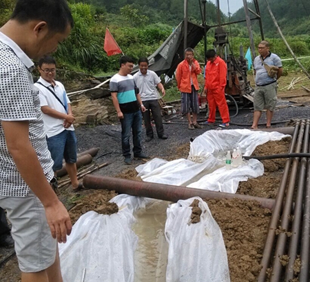打井机组测量水深现场