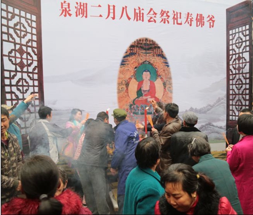 据了解,湖南省级非物质文化遗产“泉湖二月八”,始于明朝,历史悠久,文化厚重。据民间传说,由于连年干旱,当地民不聊生,饿殍遍野,天上神仙寿福爷施法降雨,普渡众生,让泉湖人过上了丰衣足食的幸福生活。泉湖人感恩戴德,特在农历二月初八日,筑庙烧香朝拜,同时并举办舞龙、唱戏等庙会活动,为寿福爷祝寿,各行各业的商贩也赶来进行农副产品交易,为即将到来的春耕生产作准备,助推节日氛围。这一传统习俗,被一代代传承下来,现已被政府打造成旅游观光、朝拜礼佛的农耕庙会文化节。庙会期间热闹非凡,游客比肩接踵,成为湘南地区每年春天的标志性节日盛会。(刘先卫)