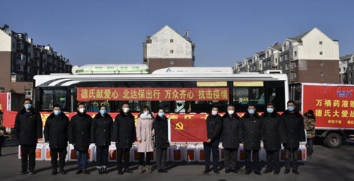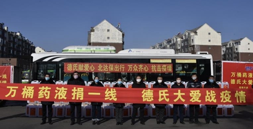 德氏集团为长春公交集团北达汽车公司捐赠100桶过氧乙酸消毒液共2.5吨,助力公交企业疫情防控工作。这批物资通过北达汽车公司安委办下发到各基层车队,为奋战在一线公交职工的消毒防护工作提供保障。