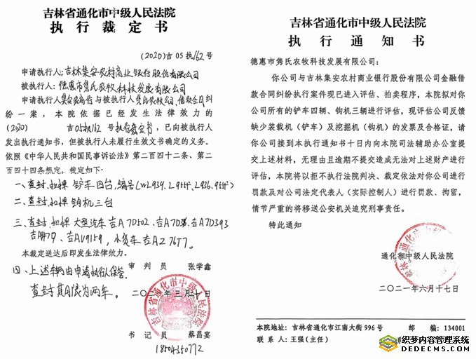 然而,事情并未就此平息。在高院和长春中院介入调查并纠正了错误冻结行为后,2021年3月,通化市中级法院因为一桩贷款纠纷,拖走并以低价拍卖了隽氏公司用国家专项资金通过招投标采购来的专用车辆和专用设备,并且再次冻结了在德惠市农业环境保护与农村能源管理站账户上的563万元中央预算投资专项资金。据隽氏公司提交的执行异议申请书显示,通化市中级法院下达的(2020)吉05执162号执行裁定书 、(2023)吉05执恢38号执行裁定书、(2023)吉05执恢38号协助执行通知书,均不符合相关法律和政策规定。
