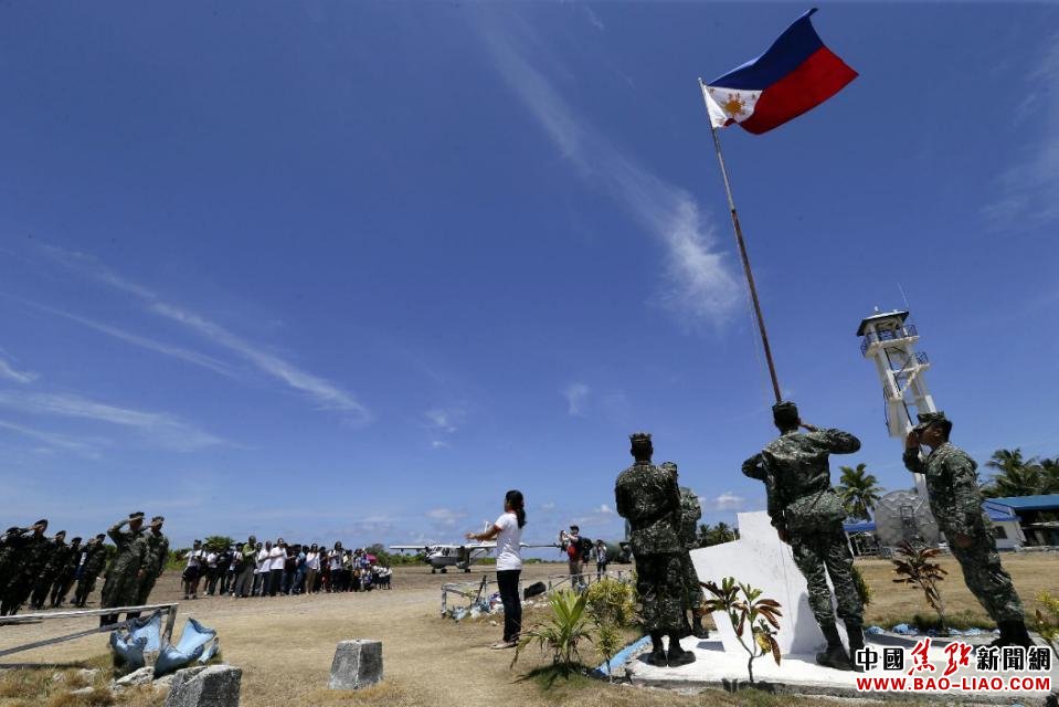 菲律宾武装部队总参谋长卡塔庞率领大批记者登上菲律宾侵占的中国南沙群岛中业岛。