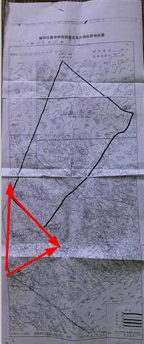 红红线内是补兔村现有的林地 黑线是被划走的林地