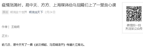 此次疫情,易中天、方方、上海媒体人给马屁精们上了一堂良心课!