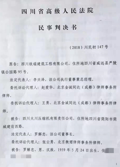 (2018)川民初147号民事判决书(首页)