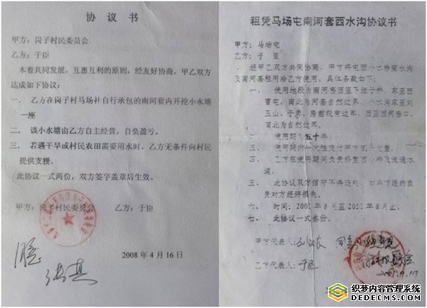 于臣世世代代在长春二道区泉眼镇岗子村马场屯居住。2001年,于臣与二道区泉眼镇岗子村马场屯签订了《租赁马场屯南河套西水沟协议书》(简称协议书),协议书约定马场屯将屯西小水桥南水沟及南河套租用给于臣使用,使用期为五十年,自2001年8月起至2051年8月止,使用期内,于臣一次性交付马场屯贰仟元整。之后,于臣按协议约定,为马场屯修整道路,治理流通水道,并修建了三座小桥,又按林业部门要求进行了植树造林,为此投入了大量的资金和人力物力。由于这是一项利国利民、造福子孙后代的大好事,又响应了党中央“绿水青山就是金山银山"的号召,于臣曾受到了当地政府和百姓的交口称赞。