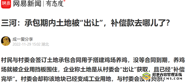 刘艳表示,北陈庄私自将其承包的鸡场出让,侵犯了她的合法权益。根据国家土地征收政策规定,泃阳镇北陈庄村出让该土地,应当依法征收和公示,并且对土地承包人及地上物进行依法补偿,在完成补偿安置后,才能变更土地性质。村委会作为合同的甲方,背信毁约已经违法,拿到企业支付的土地出让金却拒绝支付给村民,这和强抢有什么区别?