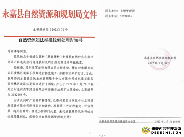 永嘉县自然资源和规划局证实涉嫌非法采矿