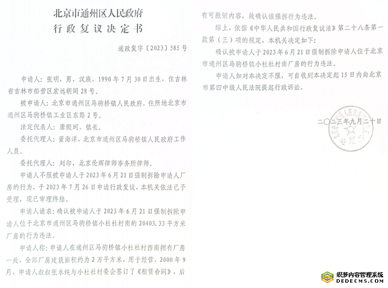 ——2023年9月,通州区政府第四次作出复议决定,明确马驹桥镇政府6月20日的强拆行为违法。