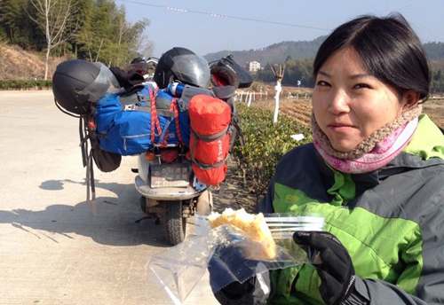 图4为李玉跟随李恒从太原骑摩托车到福建,中途休息。